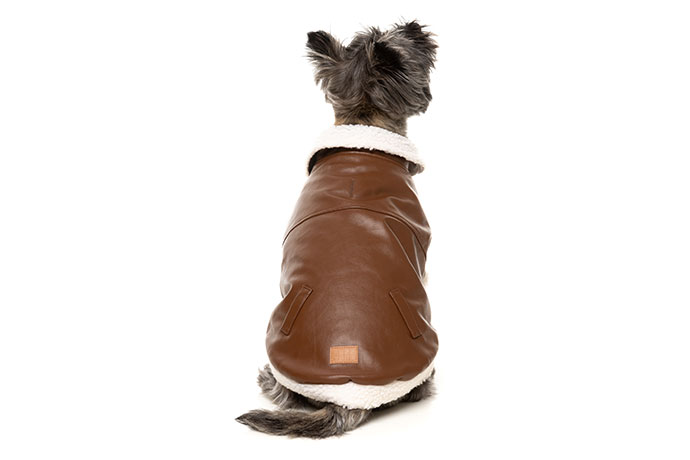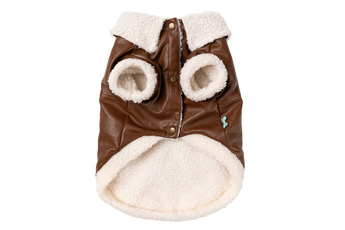 クラシックなアビエイタースタイルを彷彿とさせるアビエイタージャケットは、ペットを温かく、ヴィンテージな魅力で包み込みます。洗練されたフェイクレザーのアウターシェルと、心地よいシェルパの裏地で仕立てられたこのジャケットは、機能性と時代を超越したスタイルを融合しています。ゴールドトーンのスナップボタン、シェルパトリムのアームホール、そして2つのフェイクポケットが、冒険好きなペットにぴったりのルックを完成させます。